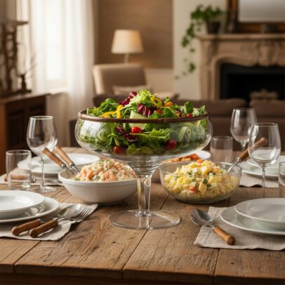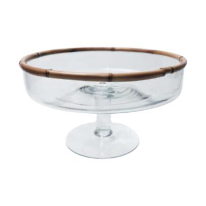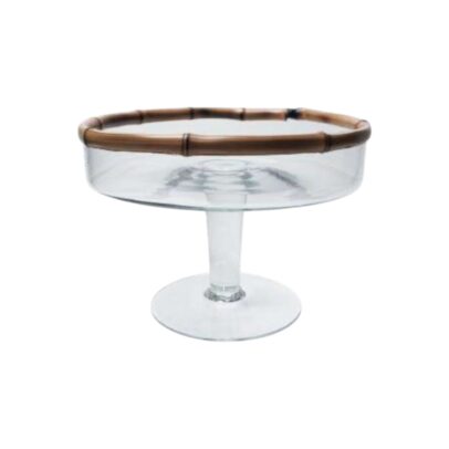 SALADEIRA DE VIDRO E DETALHE DE BAMBU COM PÉ G