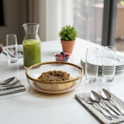 BOWL DE VIDRO REDONDO COM BAMBU M