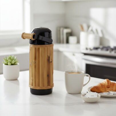 GARRAFA TÉRMICA COM BAMBU AO REDOR 1 LITRO PRETA