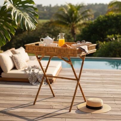 MESINHA / BANDEJA COM CAVALETE DE BAMBU