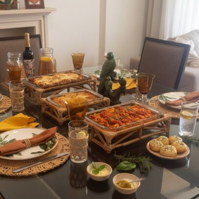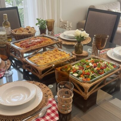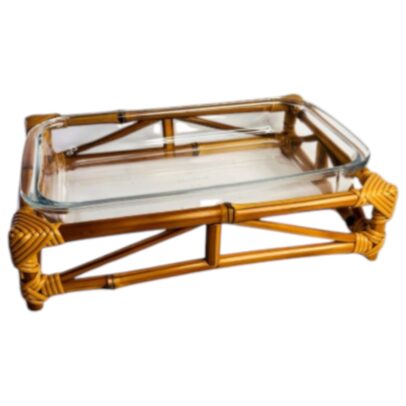 SUPORTE DE BAMBU COM REFRATÁRIO DE VIDRO RETANGULAR G
