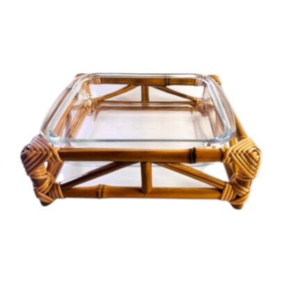 SUPORTE DE BAMBU COM REFRATÁRIO DE VIDRO QUADRADO P