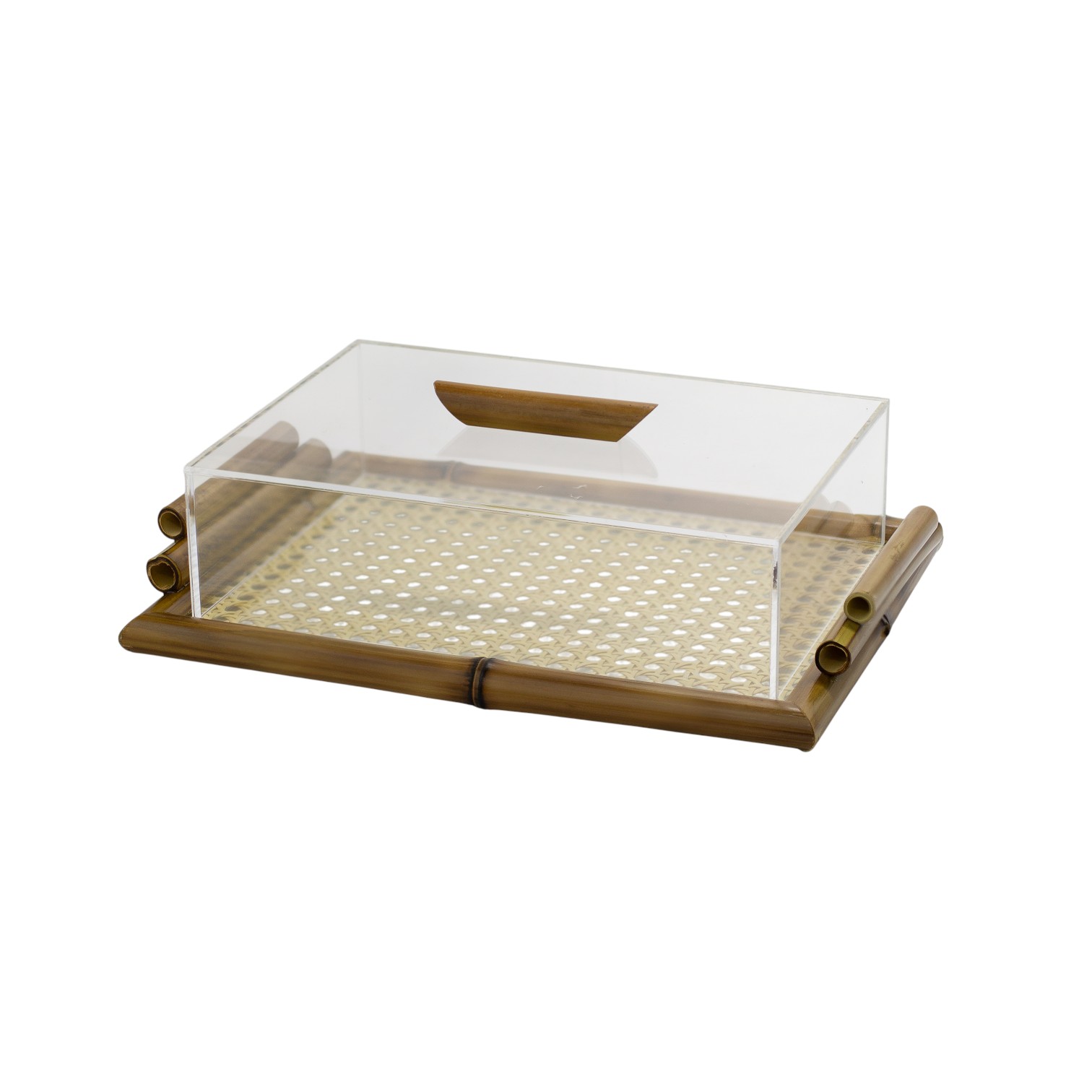 BANDEJA DE VIDRO COM BAMBU E PALHA INDIANA M