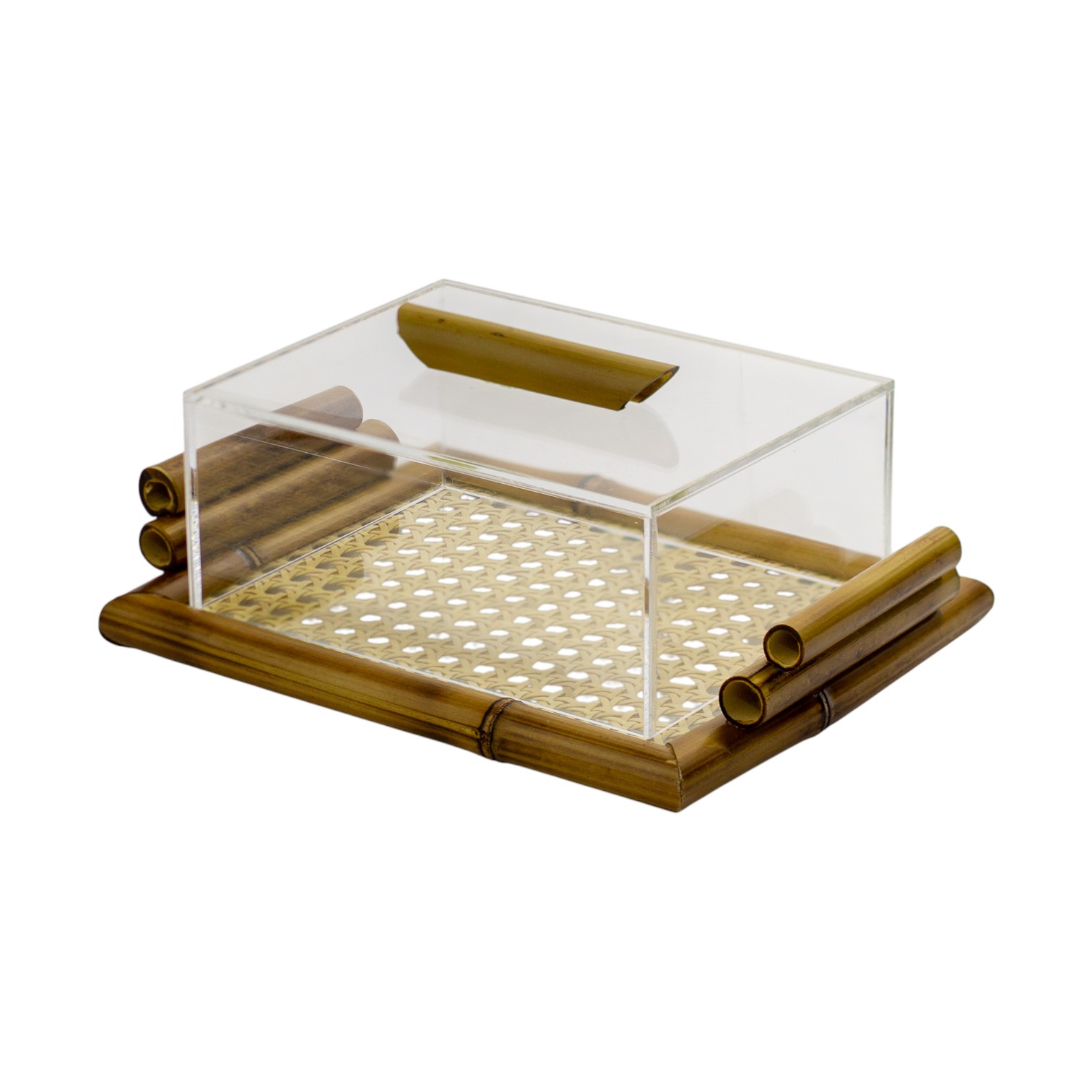 BANDEJA DE VIDRO COM BAMBU E PALHA INDIANA P