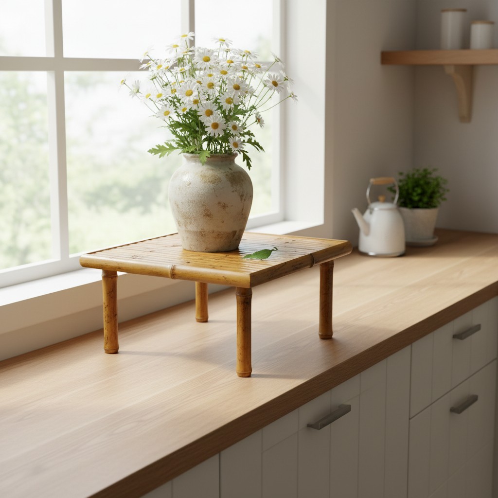 – Estrutura de Alta Estabilidade: Pés em bambu maciço projetados para suportar o peso de peças robustas de cerâmica, ferro ou vidro com total segurança.