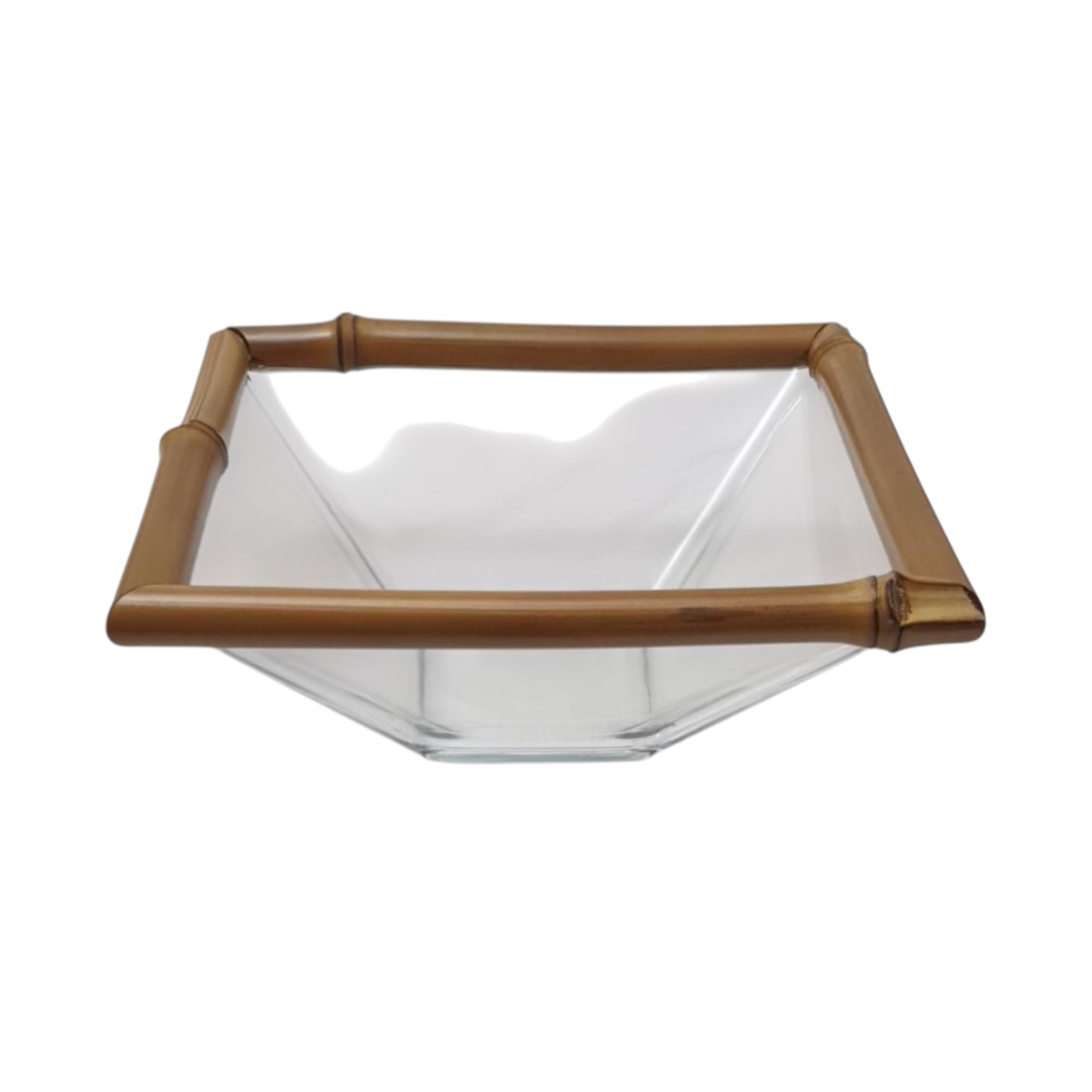 BOWL QUADRADO DE VIDRO COM BAMBU M