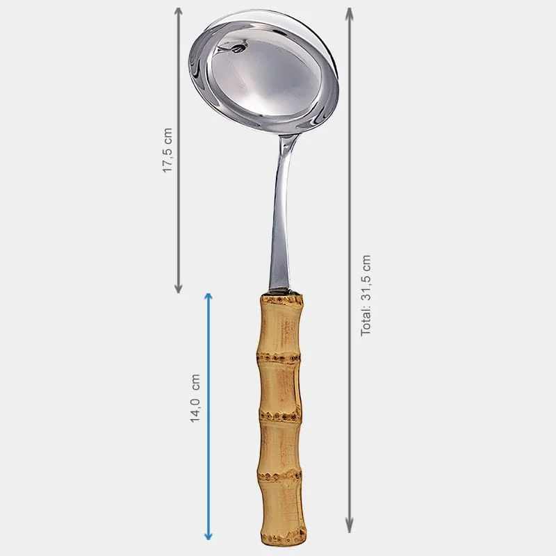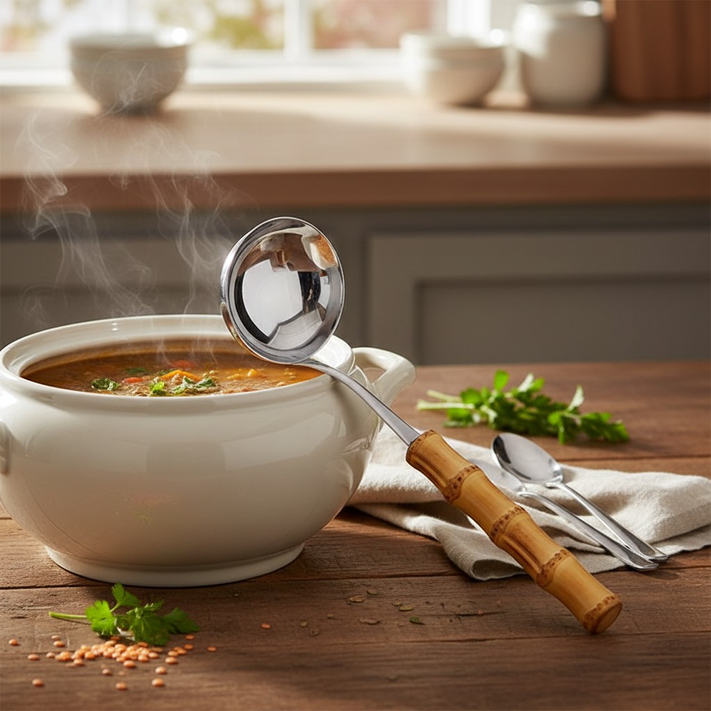 Sirva com elegância e praticidade: a Concha Grande em inox com cabo de bambu natural valoriza a mesa posta e transforma sopas, caldos, feijão e molhos em um servir mais bonito, acolhedor e sem bagunça. O tipo de peça que fica à vista na cozinha e faz diferença tanto no dia a dia quanto quando você recebe.