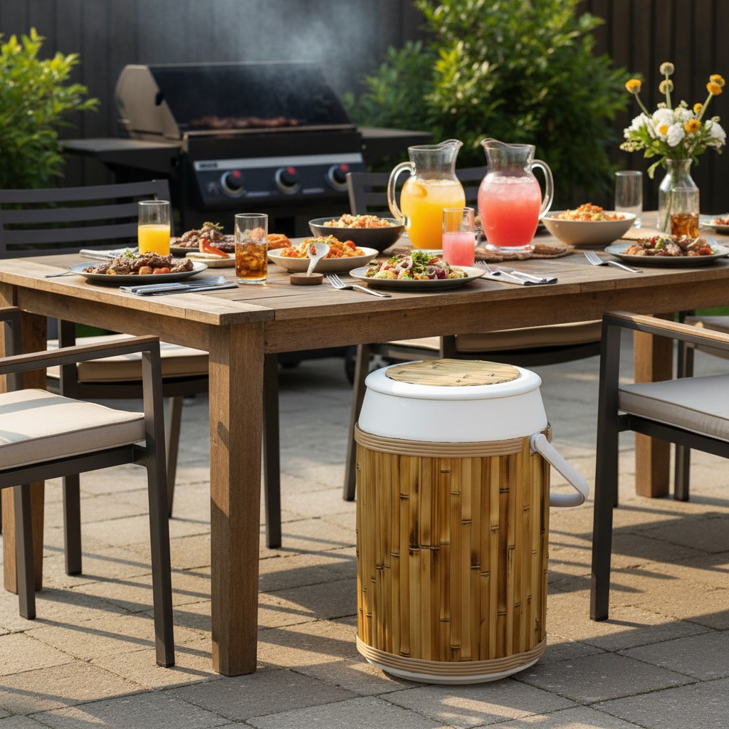 – Eventos em Áreas Gourmet e Jardins: Integre o cooler à decoração do ambiente, unindo a funcionalidade de um buffet de bebidas à beleza do bambu natural.