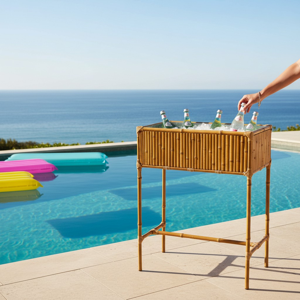 A Geleira Suporte da Rico Bambu foi desenhada para ser o ponto de encontro dos seus convidados. Esqueça os coolers improvisados no chão; esta peça eleva a experiência de servir, literalmente. O contraste entre o revestimento externo em ripas de bambu selecionadas e o brilho do compartimento interno cria uma estética tropical e luxuosa, perfeita para varandas, jardins, áreas de piscina e espaços gourmet. É mais do que um suporte para gelo: é um móvel que comunica hospitalidade, frescor e conexão com a natureza.