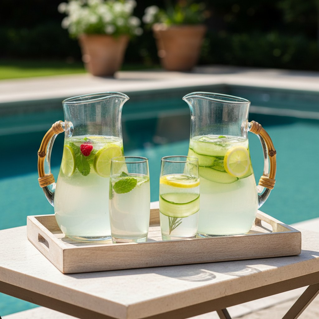 – Águas Saborizadas e Detox: Utilize a transparência do vidro para criar composições visuais com rodelas de limão, hortelã e frutas vermelhas.