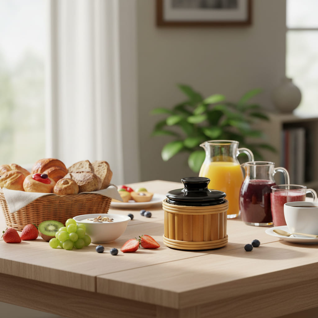 A Manteigueira Francesa Rico Bambu combina a resistência e o acabamento refinado da cerâmica preta com o charme natural do bambu. Sua tampa com puxador arredondado facilita o manuseio, enquanto a moldura em bambu valoriza a peça, trazendo aconchego e sofisticação para a mesa posta. Ideal para manter a manteiga protegida e fresca, com um visual que combina com diferentes estilos de decoração.