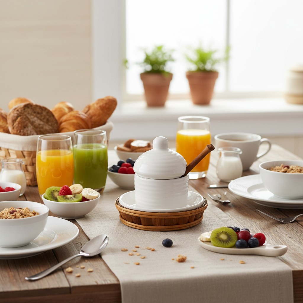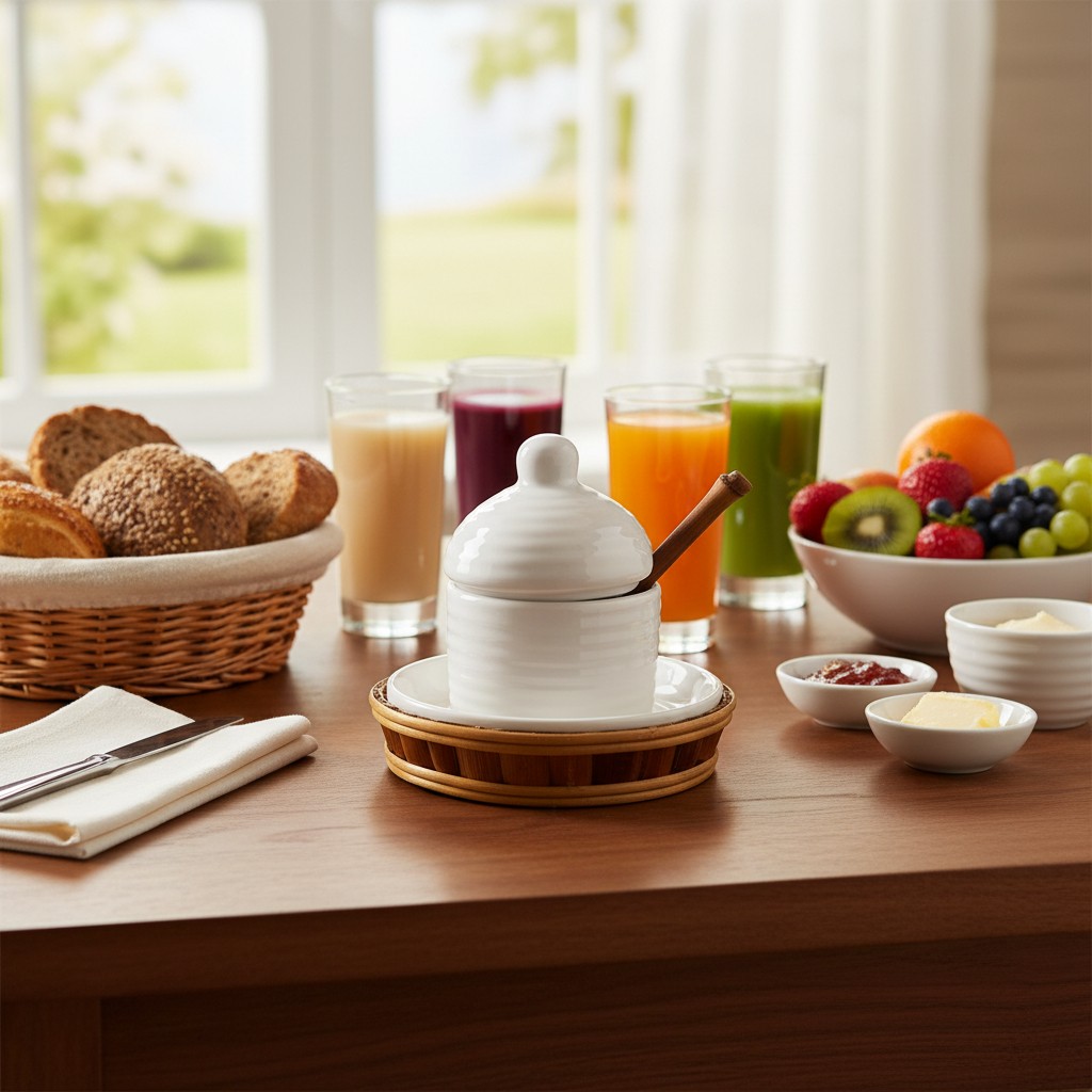 A Meleira Rico Bambu combina a resistência e o acabamento refinado da cerâmica branca com o charme natural do bambu. Sua tampa com puxador arredondado e o pequeno furo para colher facilitam o uso, enquanto a base em cerâmica com moldura em bambu traz aconchego e elegância para a mesa posta. Ideal para manter o mel protegido e pronto para servir, valorizando a apresentação em qualquer ocasião.
