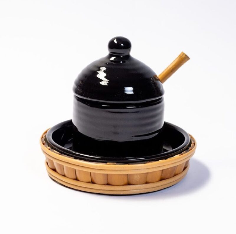Design sofisticado e funcional para sua mesa posta. A meleira de cerâmica preta com detalhes em bambu une elegância e praticidade para armazenar e servir mel com estilo e proteção. Utilize com o porta queijo e a manteigueira da mesma linha para uma mesa ainda mais especial.