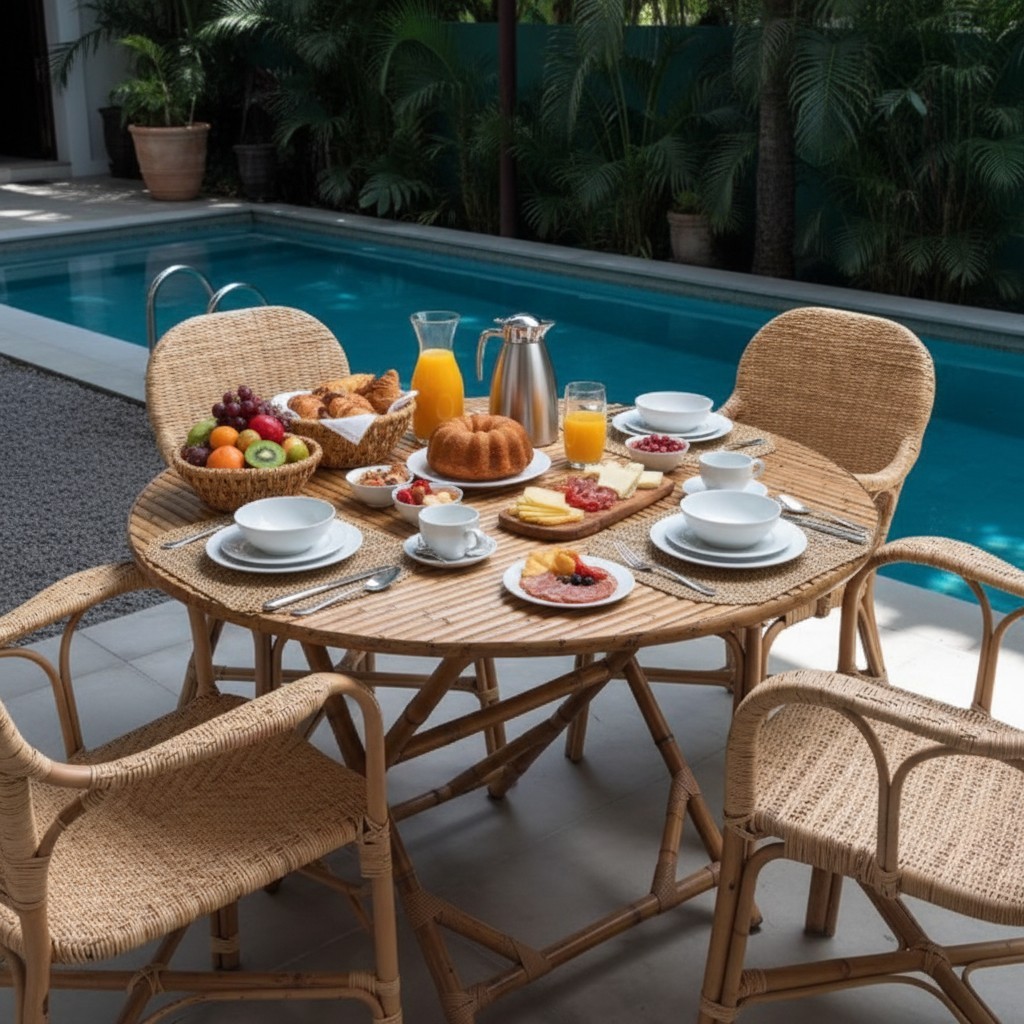 A Mesa com Cavalete G da Rico Bambu foi projetada para ser o cenário das suas melhores memórias. Com dimensões ideais para acomodar confortavelmente até 4 pessoas, seu formato circular favorece a interação e o fluxo de conversas, tornando-a perfeita para salas de jantar, varandas gourmet ou jardins cobertos. A estrutura em cavalete de bambu cana oferece uma estabilidade surpreendente com um visual leve, permitindo que a mesa seja o destaque do ambiente sem sobrecarregá-lo visualmente. É a união magistral entre o luxo rústico e a funcionalidade real.