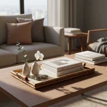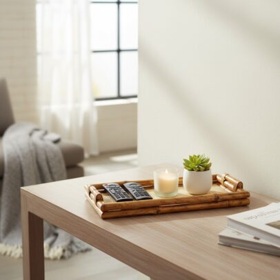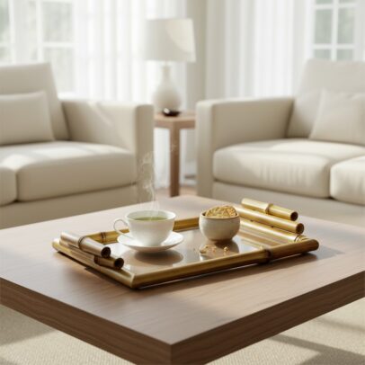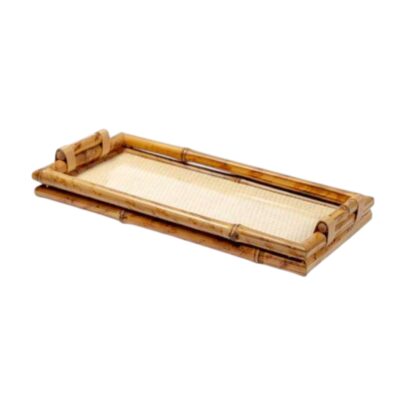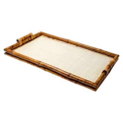 BANDEJA DE VIDRO COM BAMBU E PALHA INDIANA P