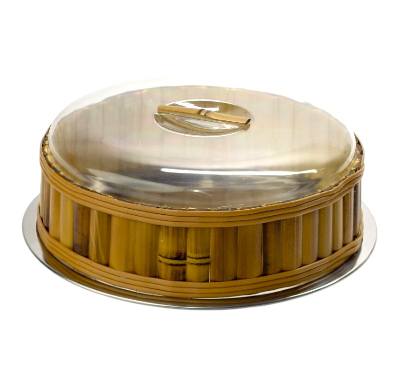 A moldura perfeita para as suas melhores receitas. Com uma base generosa em aço inox e uma imponente capa artesanal em bambu natural, este porta bolo eleva a apresentação de bolos e tortas a um novo patamar de sofisticação. Sua cúpula de acrílico cristalino protegida com leveza, mantendo a umidade e o frescor da massa, enquanto o design orgânico traz o calor da natureza para o centro de sua mesa.