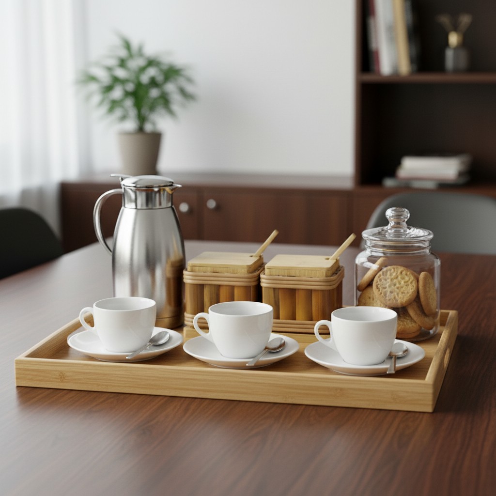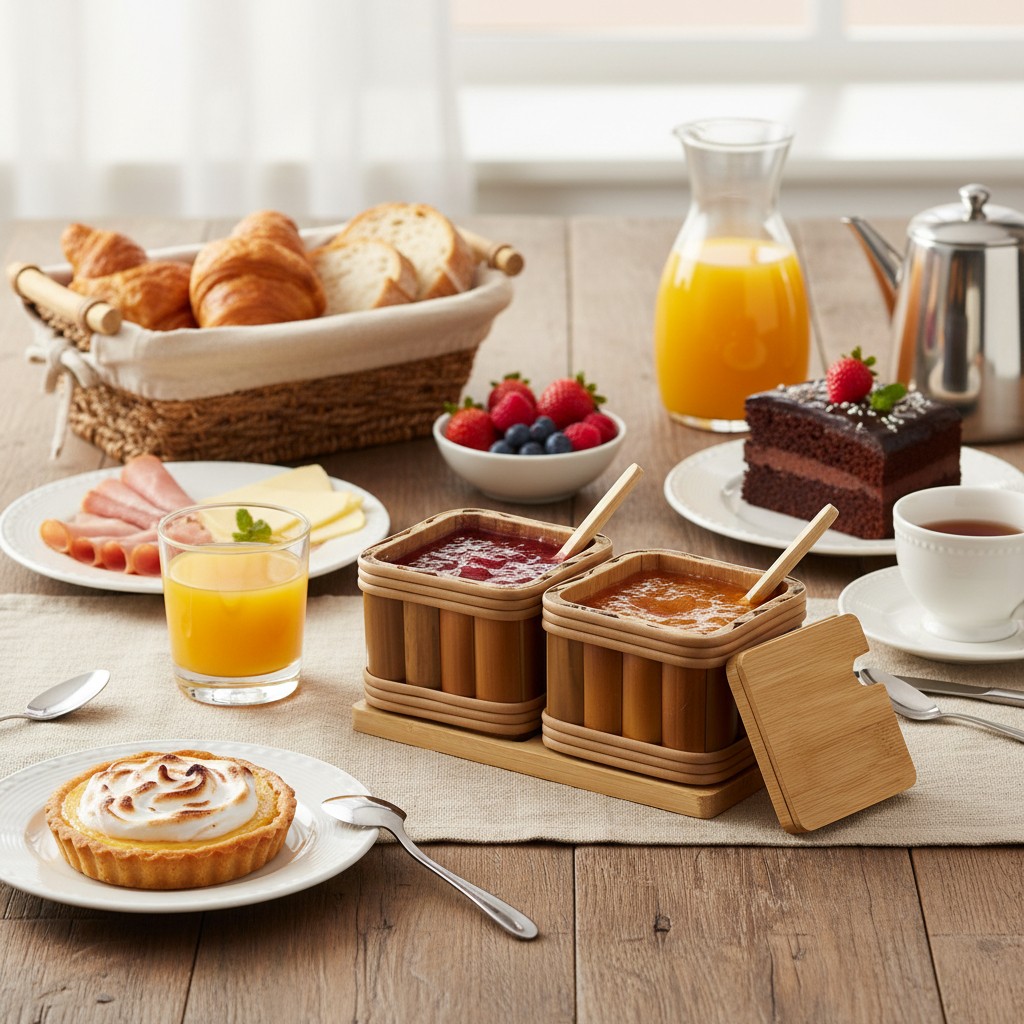 – Café da Manhã e Lanche: Perfeito para servir açúcar e adoçante, ou achocolatado e canela, criando uma estação de café sofisticada e organizada.
