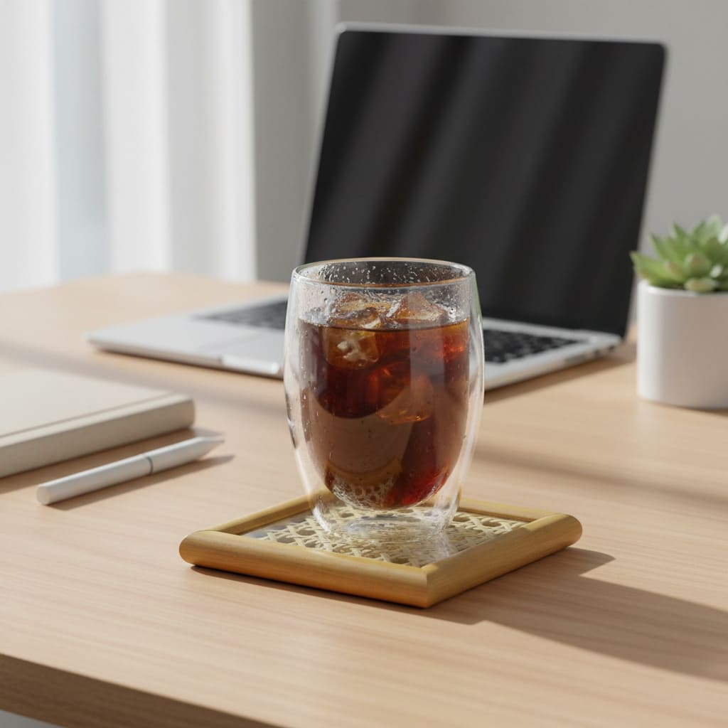 O charme atemporal da palha indiana na sua mesa. Este porta-copo exclusivo combina a icônica trama sextavada com a proteção do vidro e a moldura em bambu natural. Uma peça que une tradição, design e funcionalidade para proteger sua mesa com máxima sofisticação.