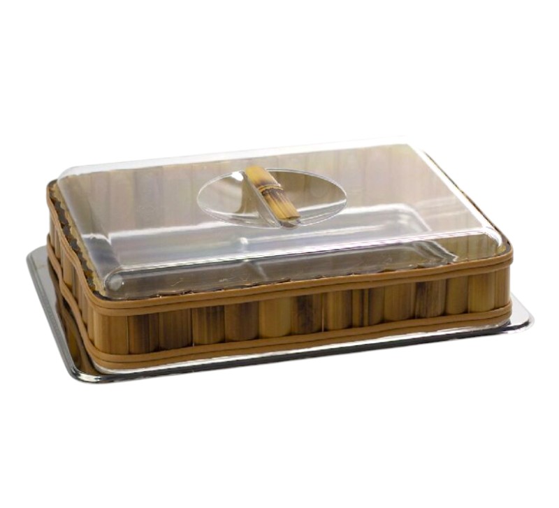 A resistência impecável do aço inox encontra a leveza do acrílico e o calor do bambu natural. Este porta-frios é a tradução da funcionalidade sofisticada: sua base em inox garante a temperatura ideal, enquanto a trama artesanal de bambu e a tampa transparente elevam a estética da sua mesa posta. Um item durável e elegante, indispensável para quem valoriza o frescor e o design em cada refeição.