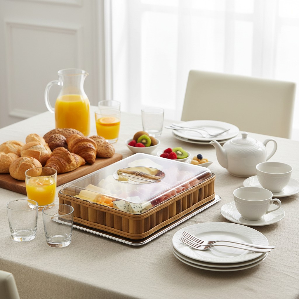 – Organização de Buffet: Excelente para eventos e reuniões, onde a tampa protege os alimentos enquanto a base em inox garante a qualidade do serviço.