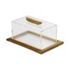 – Tampa de Acrílico com Puxador de Bambu: A cúpula transparente permite a visualização rápida do conteúdo, protegendo contra agentes externos, enquanto o puxador em bambu facilita o relacionado com elegância.