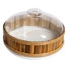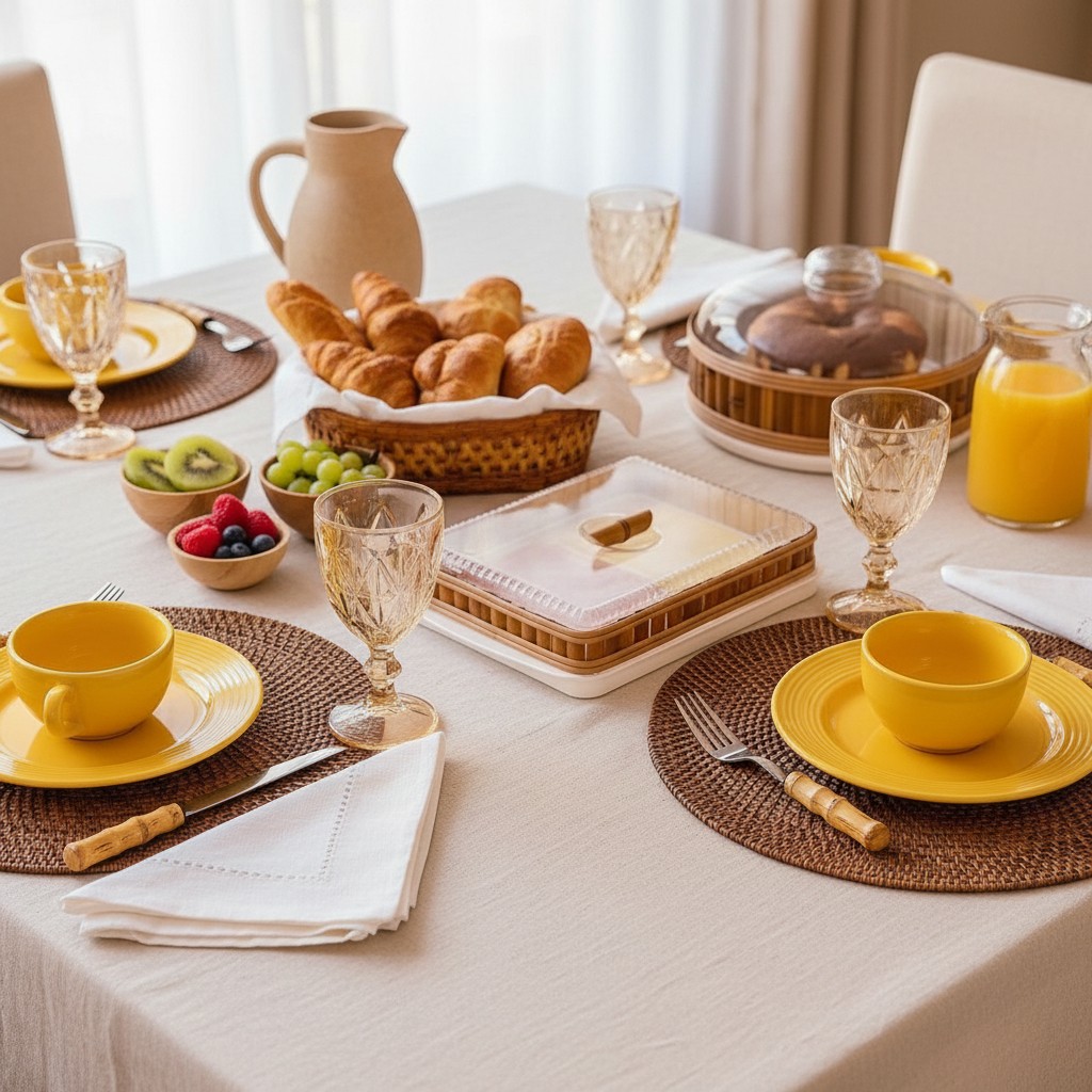 – Base em Bambu de Alta Qualidade: Estrutura resistente com acabamento lateral em bambu natural, oferecendo uma estética rústico-chique que transita perfeitamente da cozinha para a mesa.