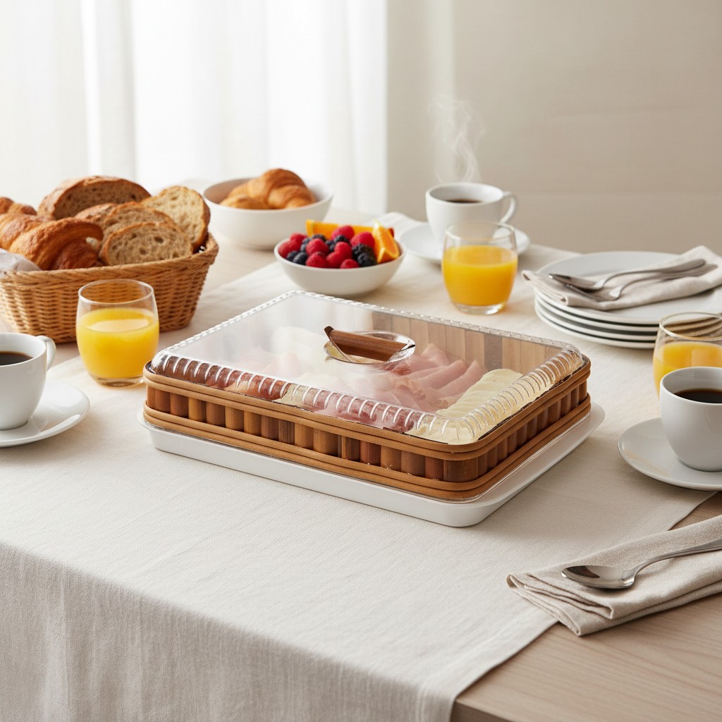 – Tampa em Acrílico Cristalino: Material de alta transparência que protege contra o ressecamento e odores da geladeira, mantendo o frescor por muito mais tempo.