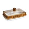 O Porta Frios Duo em Acrílico e Bambu da Rico Bambu foi projetado para quem busca funcionalidade máxima sem abrir mão da estética. O grande diferencial desta peça é sua divisória central interna, que cria dois compartimentos independentes. Isso permite que você sirva, por exemplo, queijo e presunto no mesmo recipiente sem que eles encostem um no outro, garantindo uma apresentação impecável e maior durabilidade aos alimentos. É a união perfeita entre a transparência moderna do acrílico e o calor acolhedor do bambu natural.