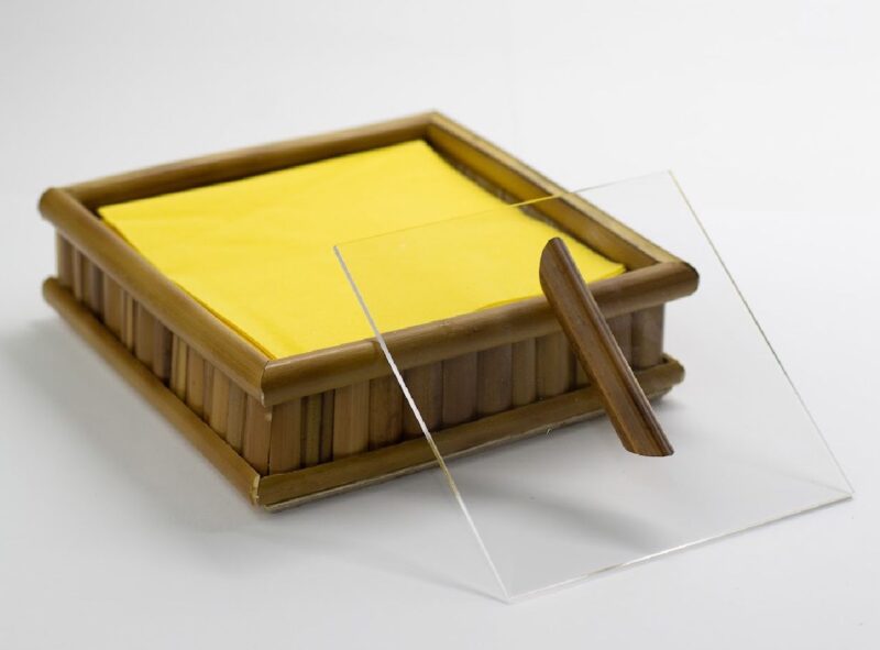 PORTA GUARDANAPO DE BAMBU E TAMPA DE ACRÍLICO GRANDE
