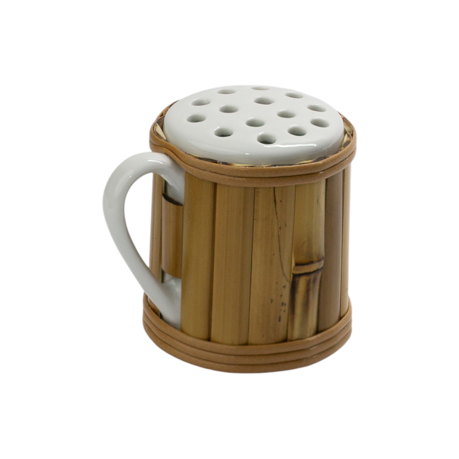PORTA QUEIJO RALADO DE PORCELANA COM BAMBU
