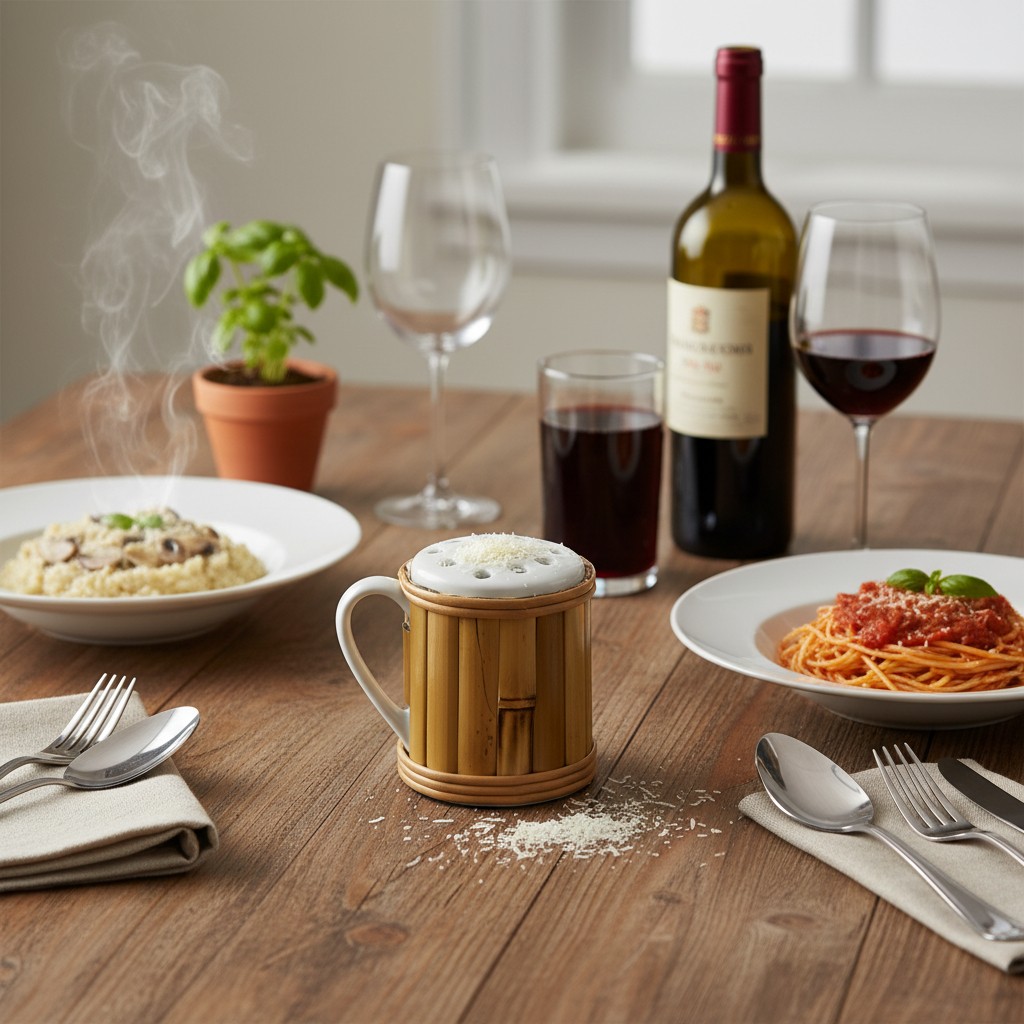 – Noite de Massas e Risotos: Sirva o queijo parmesão ralado com elegância, permitindo que cada convidado finalize seu prato com um toque de sofisticação.