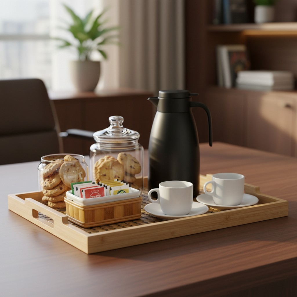 – Design Compacto e Funcional: Formato ideal para otimizar o espaço em bandejas de café, aparadores ou mesas de reunião.