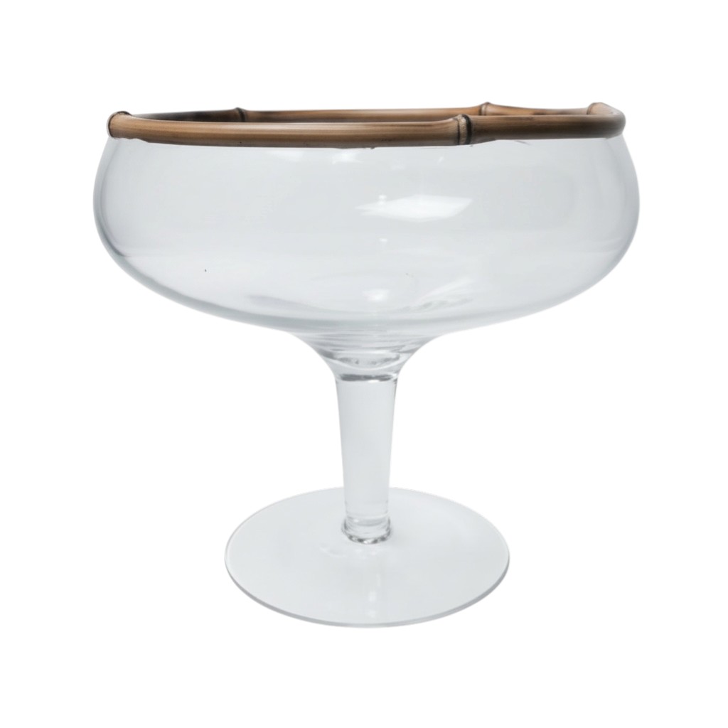 SALADEIRA DE VIDRO E DETALHE DE BAMBU COM PÉ G