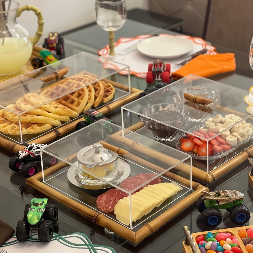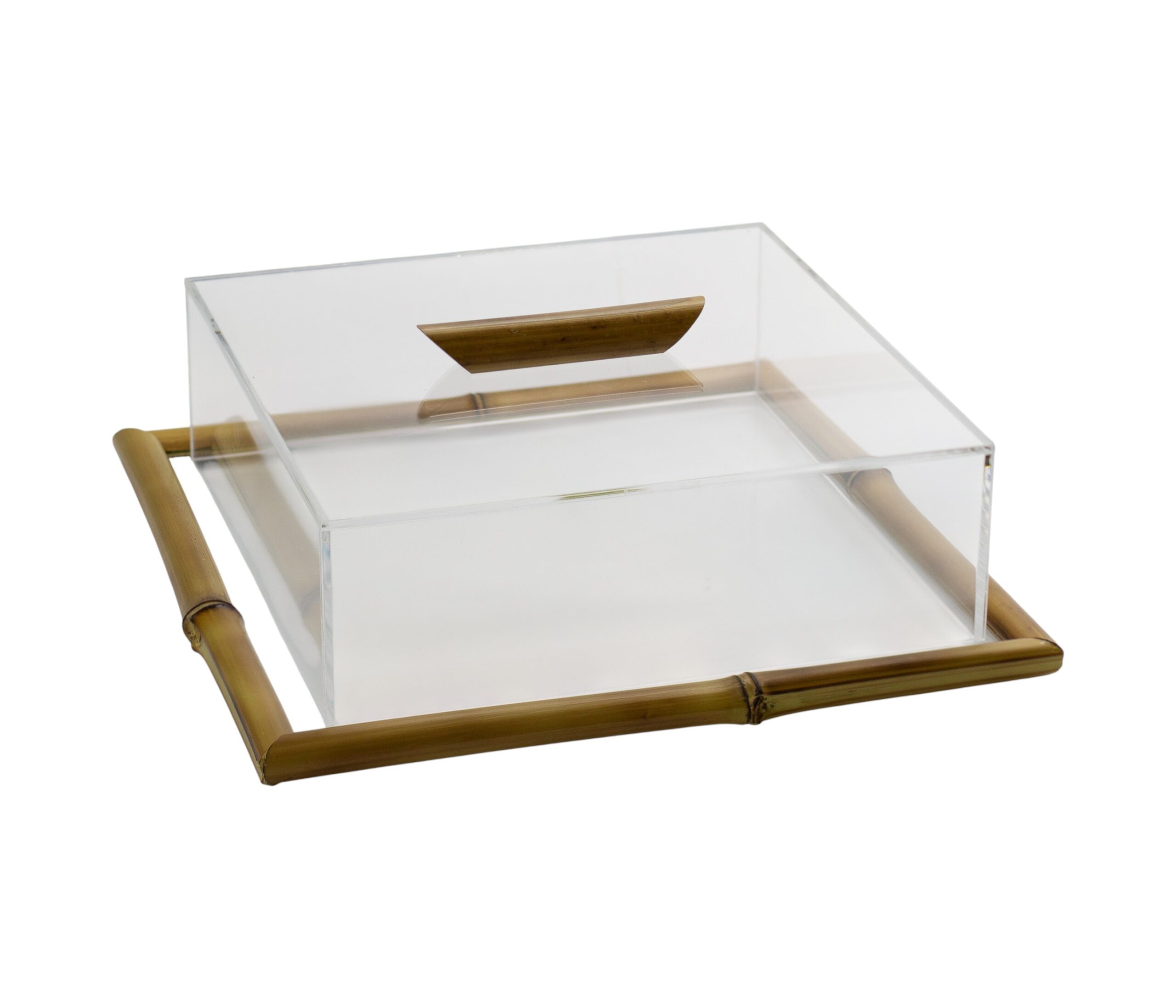 A simetria perfeita entre a transparência do vidro e a alma do bambu natural. Em seu formato quadrado e tamanho P, esta prancha com tampa é a escolha ideal para quem busca servir pequenas porções com um toque de joalheria na mesa posta. Sua cúpula de acrílico protegida com leveza, enquanto o design compacto traz uma organização impecável e sofisticada para o seu café da manhã ou lanche.