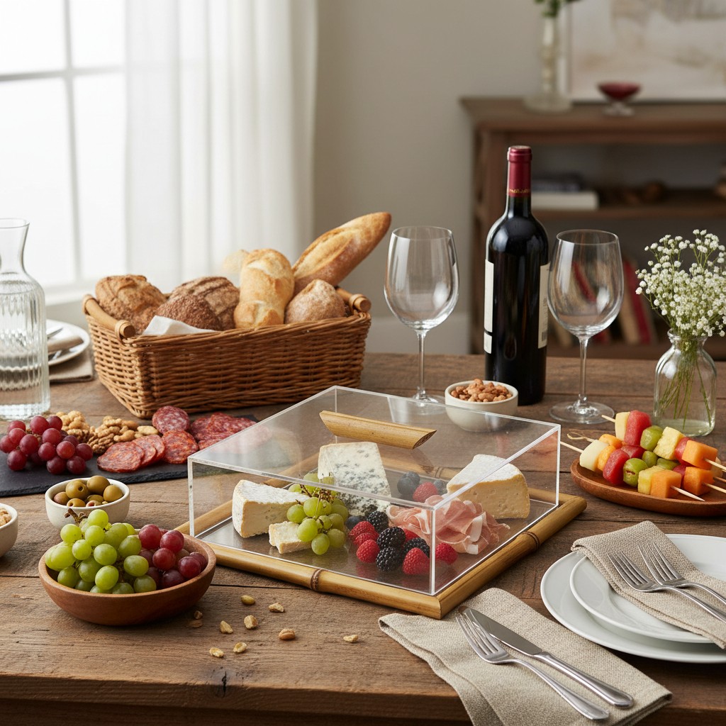 – Serviço de Queijos Especiais: Ideal para apresentar um queijo brie ou camembert, mantendo-os protegidos e em destaque no centro da mesa.