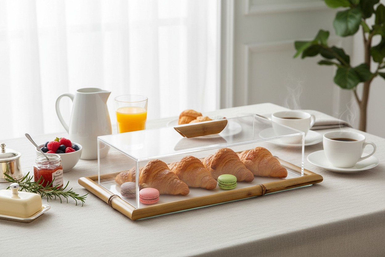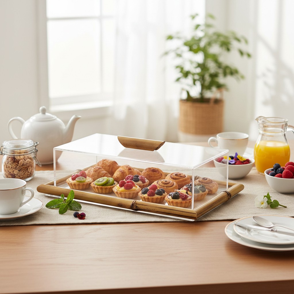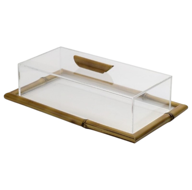 A delicadeza do vidro e a transparência do acrílico unidas pelo toque orgânico do bambu natural. Em seu formato retangular P, esta prancha com tampa é a solução charmosa para servir e proteger pequenas porções com máxima sofisticação. Um item compacto que ilumina a mesa posta, mantendo o frescor dos alimentos com um design limpo e atemporal.
