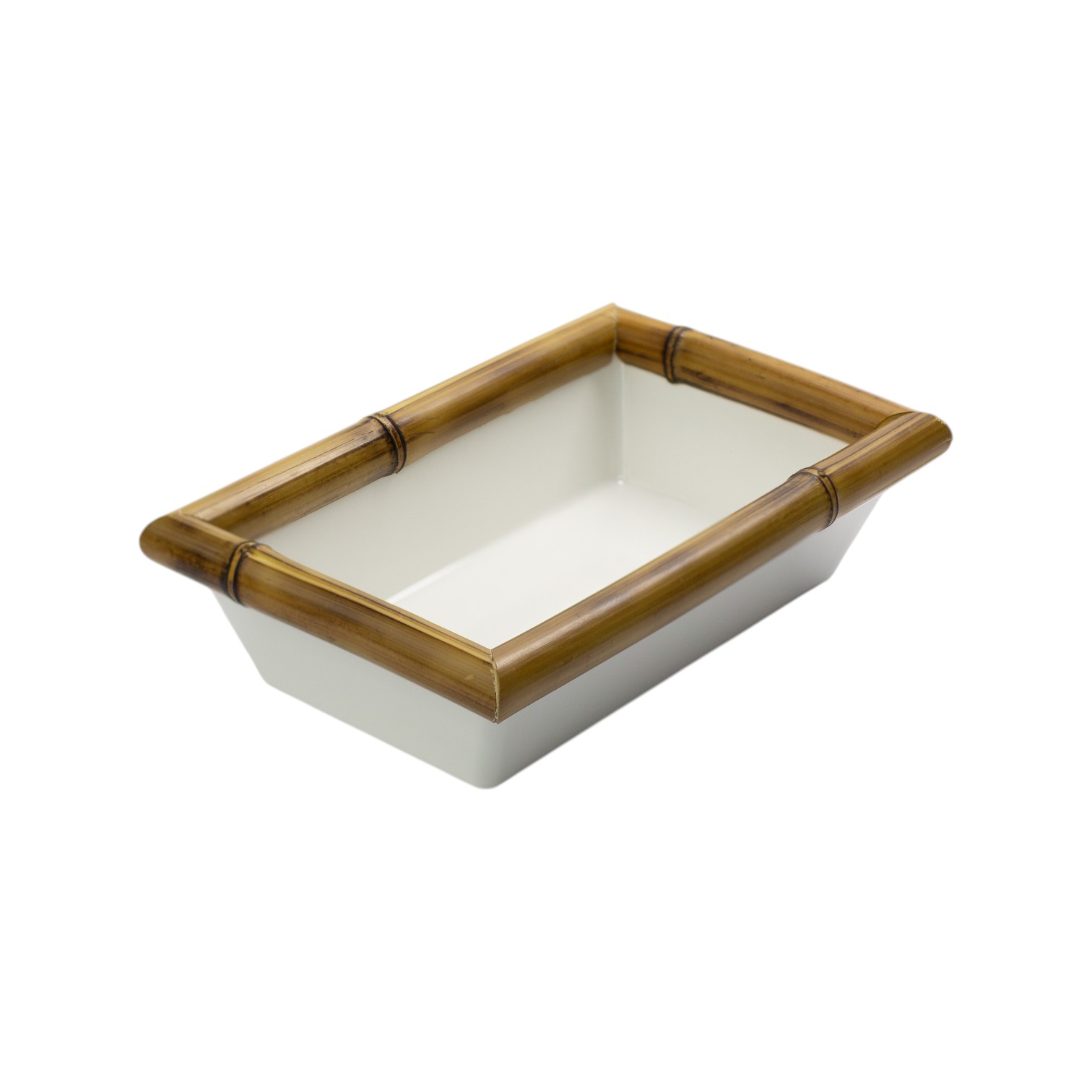 A versatilidade do design retangular em uma peça inquebrável e sofisticada. Esta Travessa Funda, com dimensões estratégicas de 27 x 16,5 x 7 cm, é confeccionada em melamina premium de alta resistência, emoldurada por um exclusivo acabamento artesanal em bambu natural na borda. Com sua profundidade de 7 cm e estética rústico-chique, ela é a solução definitiva para quem busca a beleza da porcelana com a durabilidade necessária para áreas externas, barcos e o uso intenso do dia a dia.