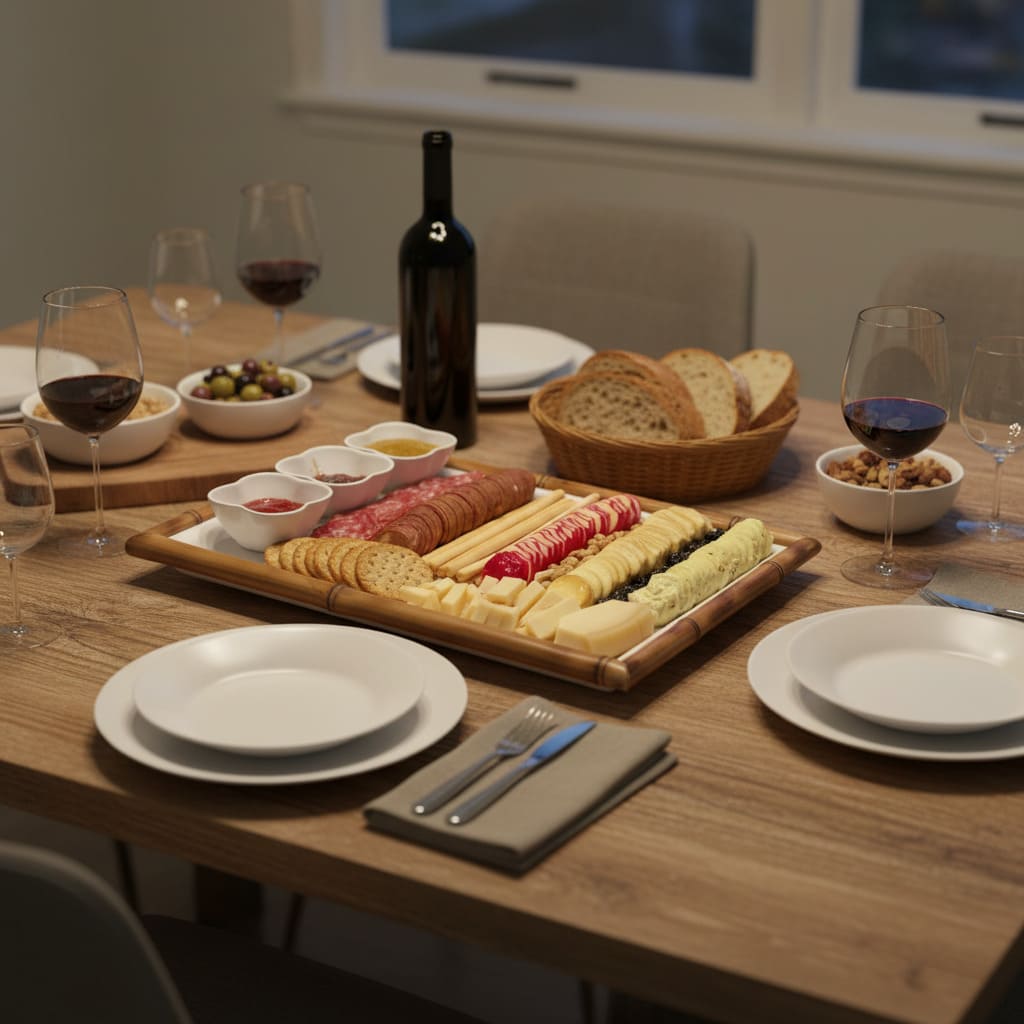 – Noite de Antepastos: Organize fatias de presunto cru, salames, azeitonas e nuts para receber amigos com um visual de bistrô.